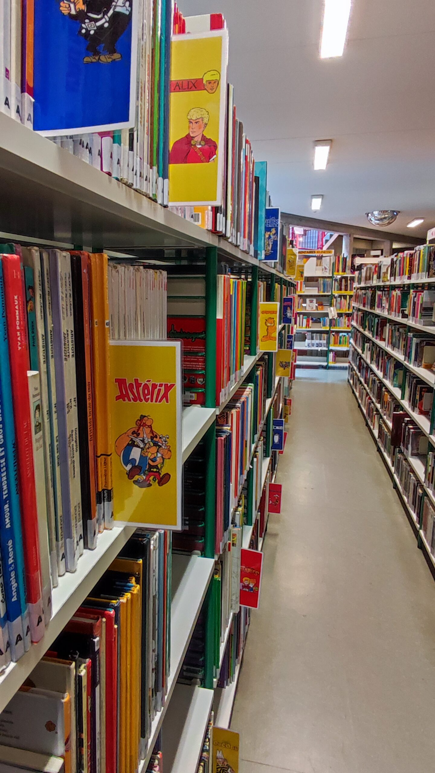 Afin d’améliorer la communication à l’intérieur de la bibliothèque, j’ai entrepris le projet de créer des intercalaires pour le « rayon » bande-dessinée.