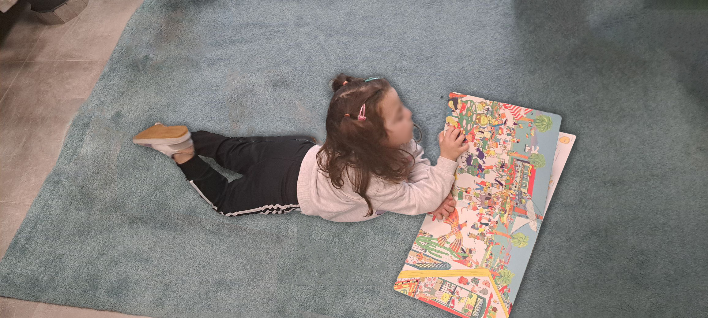 Cela consistait à retravailler une photo déjà existante dont je ne suis pas l’auteur (prise lors d’une activité organisée par la bibliothèque). Il fallait l’étendre au format de bannière Facebook, ainsi que flouter le visage de la petite fille pour qu’elle ne soit pas reconnaissable.